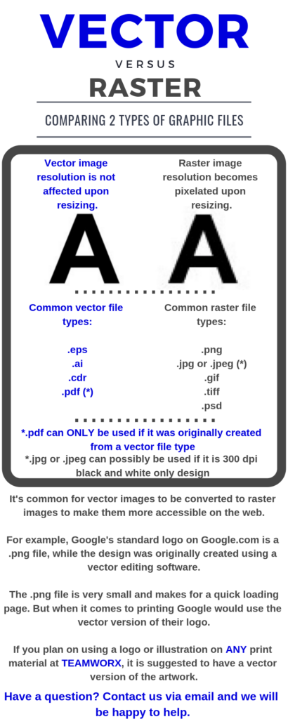 Vector images are commonly used for logos, icons, illustrations, and other graphics where clean lines and shapes are important. It is the preferred format for Screen Printing as vector images can be scaled without any problems while bitmap images cannot.